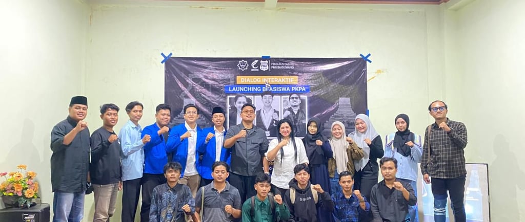 Banyuwangi – Pengurus Cabang Pergerakan Mahasiswa Islam Indonesia (PC PMII) Banyuwangi menggelar dialog publik sekaligus peresmian program Beasiswa Pendidikan Khusus Profesi Advokat (PKPA) hasil kolaborasi dengan Dewan Pimpinan Pusat Perkumpulan Pengacara Syariah dan Hukum Indonesia (DPP PPSHI).Agenda tersebut berlangsung pada Kamis, 25 Desember 2025, di Graha Mahbub Djunaidi, Banyuwangi. Kegiatan ini menghadirkan Direktur Eksekutif DPP PPSHI, Hasan Amirin Damar Jati, serta Ketua Komisi I DPRD Banyuwangi, Marifatul Kamila, sebagai narasumber utama.